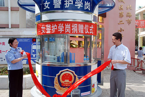 近日,市公安局交警支隊(duì)女警護(hù)衛(wèi)崗捐贈(zèng)儀式在海城區(qū)二小門(mén)前舉行。北海景光電子有限公司向交警支隊(duì)捐贈(zèng)了兩個(gè)女警護(hù)衛(wèi)崗?fù)ぃ瑑r(jià)值達(dá)4.6萬(wàn)元,用實(shí)際行動(dòng)支持百萬(wàn)學(xué)生文明交通暨“護(hù)衛(wèi)天使行動(dòng)”創(chuàng)建工作。據(jù)了解,目前全市共有三個(gè)護(hù)學(xué)崗,其中女警護(hù)學(xué)崗兩個(gè),在每天學(xué)生上學(xué)放學(xué)的高峰期,在校門(mén)口路段指揮疏導(dǎo)交通,引導(dǎo)護(hù)送學(xué)生安全有序地橫過(guò)道路,確保校園周邊道路交通秩序井然。