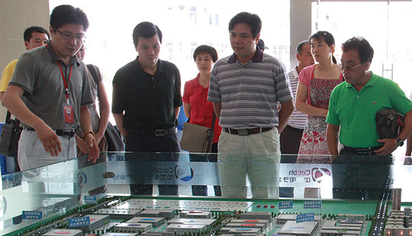 劉慶強(qiáng)局長(zhǎng)一行在展廳聽(tīng)取了園區(qū)發(fā)展情況的介紹,并參觀了長(zhǎng)城能源及國(guó)鈺電子生產(chǎn)車間,詳細(xì)了解了企業(yè)生產(chǎn)工藝和市場(chǎng)開(kāi)拓等情況。在北部灣電子信息科技企業(yè)孵化器,劉局長(zhǎng)一行饒有興致地參觀了孵化器企業(yè)展品,并與企業(yè)的員工親切交談,了解企業(yè)在孵化器的發(fā)展情況。劉局長(zhǎng)表示中電北海產(chǎn)業(yè)園、北海市科技局共同打造孵化器,所取得的先進(jìn)經(jīng)驗(yàn)值得學(xué)習(xí)研究,兩市的科技部門要加強(qiáng)溝通,互相借鑒提高。