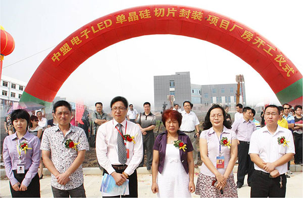 2011年10月28日上午,廣西北海中盟電子科技開(kāi)發(fā)公司3號(hào)廠房舉行了隆重的開(kāi)工儀式,該廠房建筑面積11000平方米,預(yù)計(jì)2012年7月底投入使用,主要從事LED封裝、單晶硅切片封裝、太陽(yáng)能路板生產(chǎn)。