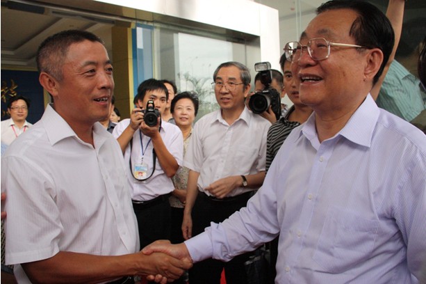 2012年9月6日下午,中共中央政治局委員、全國政協(xié)副主席王剛在廣西壯族自治區(qū)黨委書記郭聲琨,政府主席馬飚的陪同下蒞臨中國電子北海產(chǎn)業(yè)園視察指導,中電科技公司董事長謝慶華在園區(qū)展廳迎接了王剛副主席一行。