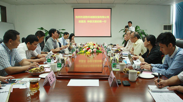 2014年8月12日,勝科城鎮(zhèn)發(fā)展公司副總裁梁國龍、鐘俊文在廣西自治區(qū)商務廳副廳長韋朝暉、北海市副市長石昆的陪同下赴中國電子北海產業(yè)園,就以北部灣智慧生態(tài)電子城項目為基礎,雙方進行戰(zhàn)略合作有關事宜進行實地考察。考察期間,自治區(qū)黨委常委、北海市委王小東書記進行了親切會見,北海市政府林山青常務副市長帶隊與考察團進行了座談。
