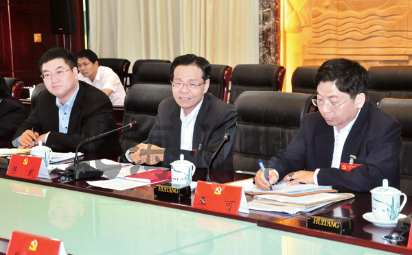 圖片說(shuō)明:11月21日下午,陳武、王可、李延強(qiáng)同志參加自治區(qū)第十一次黨代會(huì)北海市代表團(tuán)全體會(huì)議,與大家一起審議彭清華同志代表中國(guó)共產(chǎn)黨廣西壯族自治區(qū)第十屆委員會(huì)所作的報(bào)告。北海日?qǐng)?bào)記者 扶建邦 攝