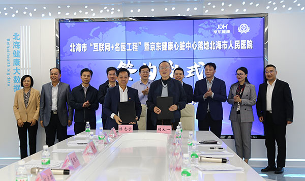 會(huì)上,京東健康心臟中心正式簽約落地北海市人民醫(yī)院,為北海市“互聯(lián)網(wǎng)+名醫(yī)工程”揭開(kāi)新篇章。